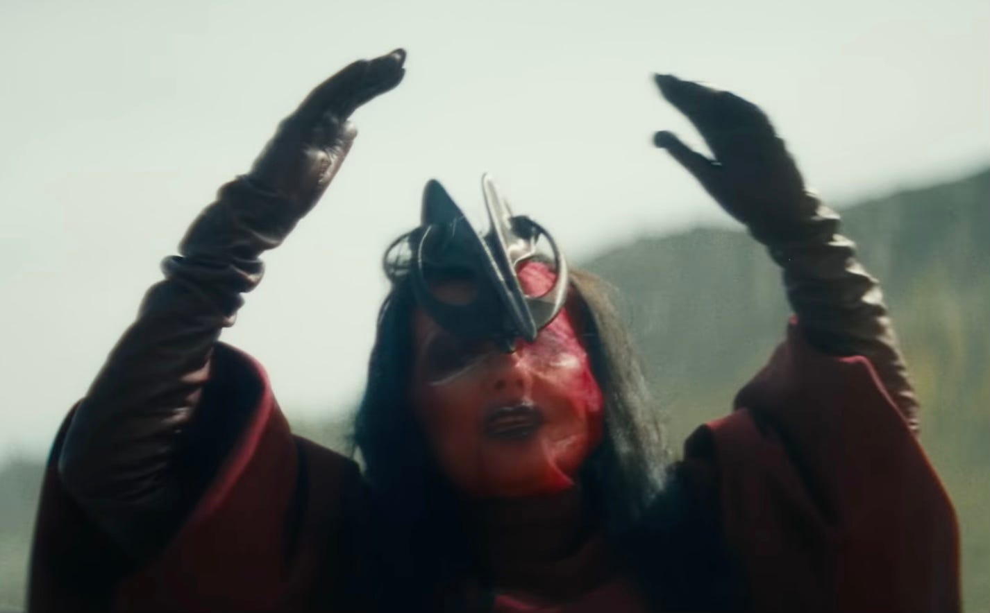 Björk salutes her late mother Hildur Rúna Hauksdóttir on her new song “Ancestress,” the third pre-release track from her upcoming album Fossora. In the Andrew Thomas Huang-directed video, Björk, in a flowing red dress and black, beak-like headpiece, walks amid mountains and caves in tandem with dancers and musicians playing gongs and violins.